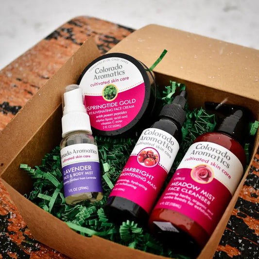 We package our skincare products in the collection to make the perfect gift. Choose one for yourself or to give away. Want us to put together something different? Give us a call. We can do a personalized gift set for your special occasion be it a wedding, corporate event, or retreat.